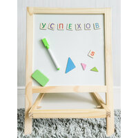 Многофункциональный двусторонний мольберт для рисования — идеальный инструмент для творчества и обучения детей! С одной стороны он оснащен классической доской для рисования, а с другой — магнитной доской, что открывает безграничные возможности для самовыражения и игры. Мольберт оснащен двумя сторонами для творчества: одна сторона предназначена для рисования мелками, что позволяет создавать яркие и красочные произведения искусства, а другая — магнитная доска, на которой можно писать маркером и прикреплять магнитные элементы. В набор входят мелки для рисования, маркер для магнитной доски и губка для стирания, а также набор букв и цифр для обучения и развития. Компактный и легкий, мольберт легко перемещать и хранить, что делает его отличным выбором для дома, школы или игр на улице. Размер поля 23х23 см. Вес мольберта - 920г. Идеален для развития художественных навыков, воображения и моторики у детей, а также для занятий рисованием и письмом.
