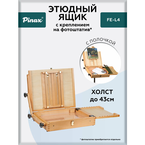 Этюдник для рисования FE-L4 - это акварельный мольберт, ориентированный в первую очередь для работы c масляными красками, но идеально подходит для работы с акриловыми красками, и для картин по номерам. Этюдник не имеет аналогов - это одновременно и многофункциональный настольный мольберт для работы в домашних условиях, а при установке на фотоштатив еще и полноценный этюдный ящик (фотоштатив в комплект не входит, с которым можно выходить на пленэр. Наличие крепления для фотоштатива, полочки для размещения художественных кистей делают этюдник идеальным для работы как дома, так и на природе. Мольберт для рисования оснащен регулировкой держателя для холста, что позволяет наклонять его практически до горизонтального положения. Мольберт рассчитан для холстов высотой до 43 см. Этюдный ящик выполнен из дерева бука, что делает его долговечным, устойчивым к влажности, хорошо и легко полируется. Все пластиковые фиксаторы цельнолитые, из прочного пластика и устойчивые к ударам. Он отлично подходит для рисования с натуры, пленэров, работы дома и рисования картин по номерам. Деревянный мольберт для рисования станет прекрасным подарком на любой праздник: Новый год, День рождения, 1 сентября. В подарок взрослому и ребенку, юному художнику, профессионалу, студии творческому взрослому человеку, в школу для рисования, на мастер класс, и ребенку. Подарите его даже без повода - подруге, другу, сестре, дочке или сыну, коллеге, учителю.