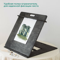 Мольберт выполнен в формате мольберт-планшет, что делает его удобным для работы в любых условиях. Легкий и мобильный, мольберт легко складывается для транспортировки.
