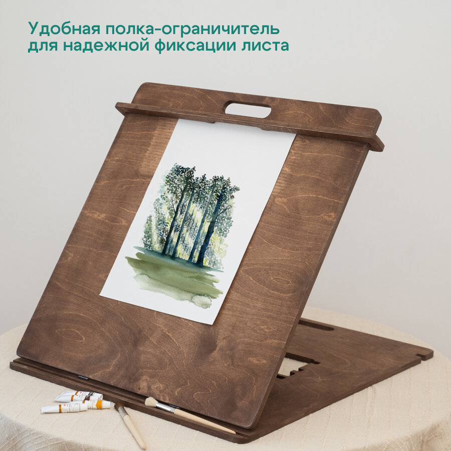 Мольберт для рисования А2 от "Растульчик" - это настольный мольберт с регулировкой наклона, выполненный в формате мольберт-планшет. Он станет незаменимым помощником для художников разного уровня, подходит как для профессионалов, так и для начинающих.