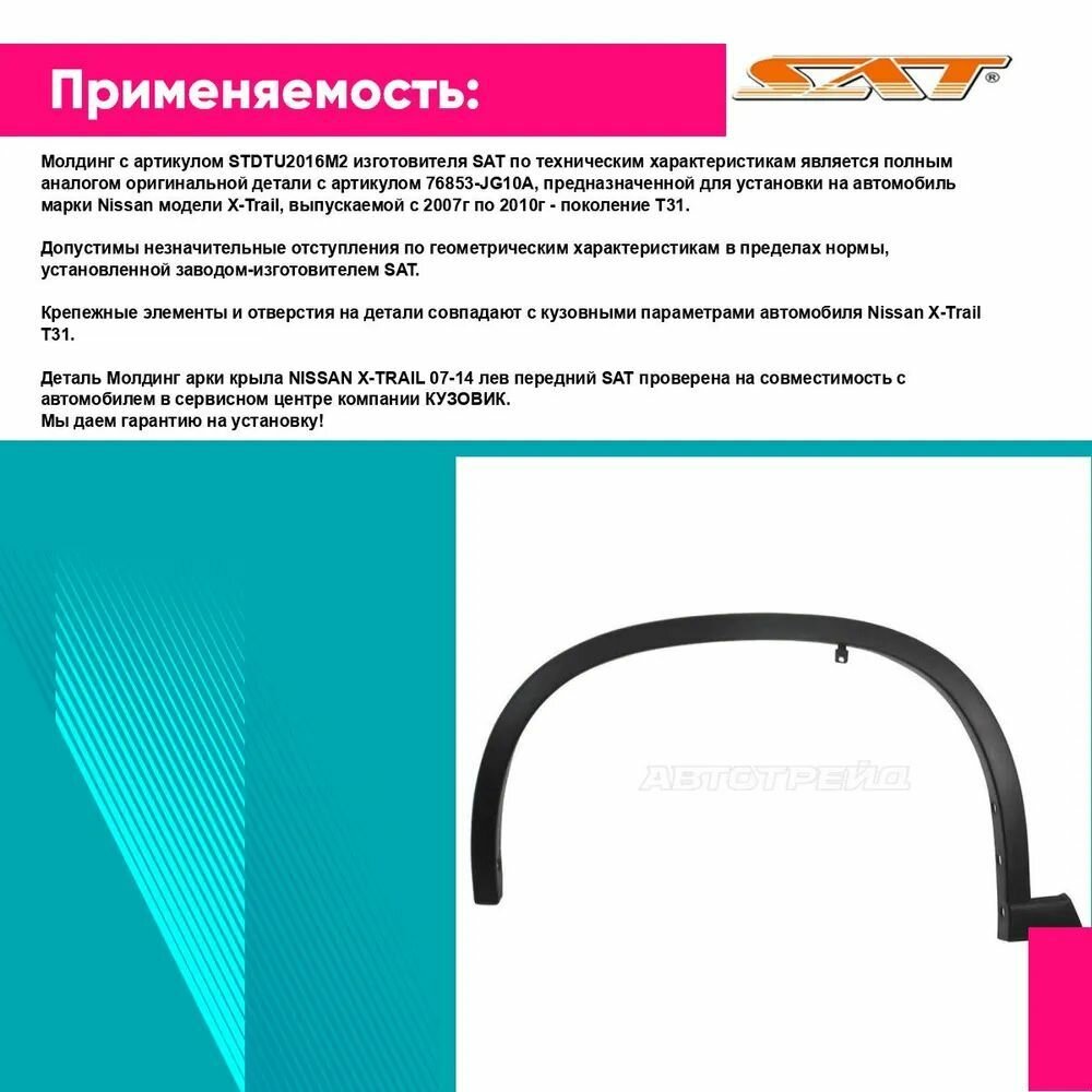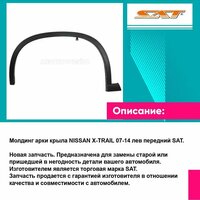 Молдинг арки переднего крыла левый Ниссан х-трейл NISSAN X-TRAIL (2007-2014) накладка, новый качественный пластик SAT: сравнение цен, характеристики, фото, актуальное наличие и цены.
