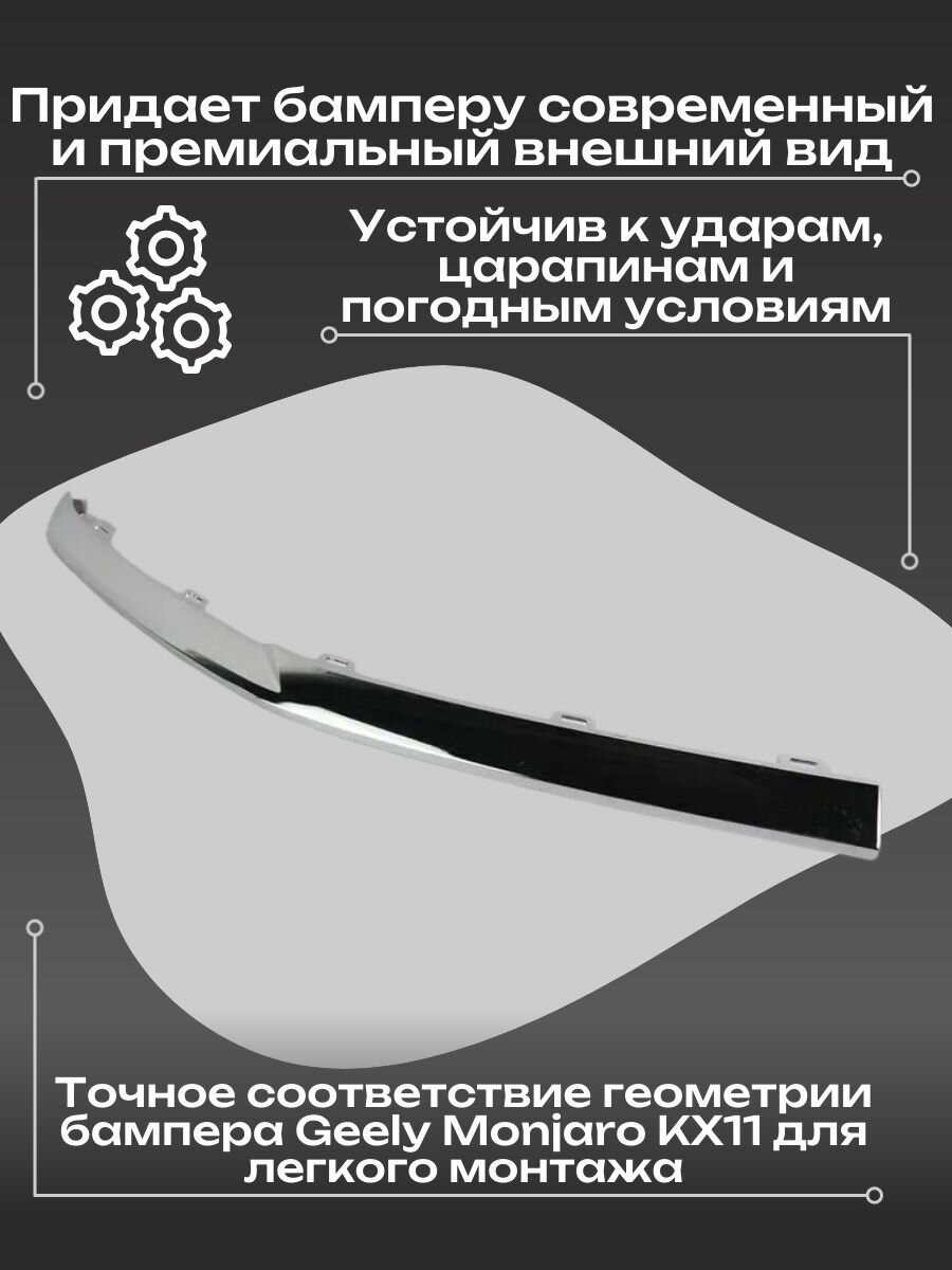 Купить Молдинг бампера Geely Monjaro 6010179400, передний, правый, ABS пластик, хром с доставкой по всей России.