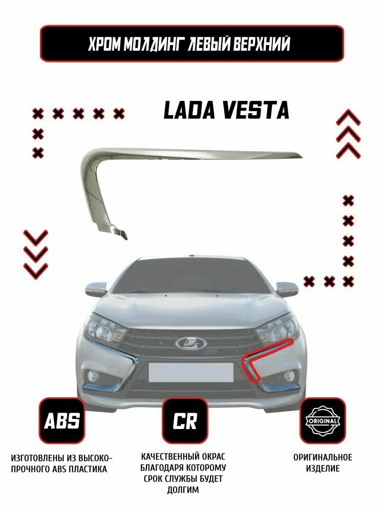Купить Молдинг переднего бампера левый верхний Lada Vesta / Оригинал / Хром с доставкой по всей России. Молдинг переднего бампера левый верхний Lada Vesta / Оригинал / Хром: сравнение цен, характеристики, фото, актуальное наличие и цены.