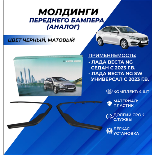 Молдинги переднего бампера Лада Веста НГ с 2023 г. в цвет черный матовый / аналог / комплект 4шт: сравнение цен, характеристики, фото, актуальное наличие и цены.