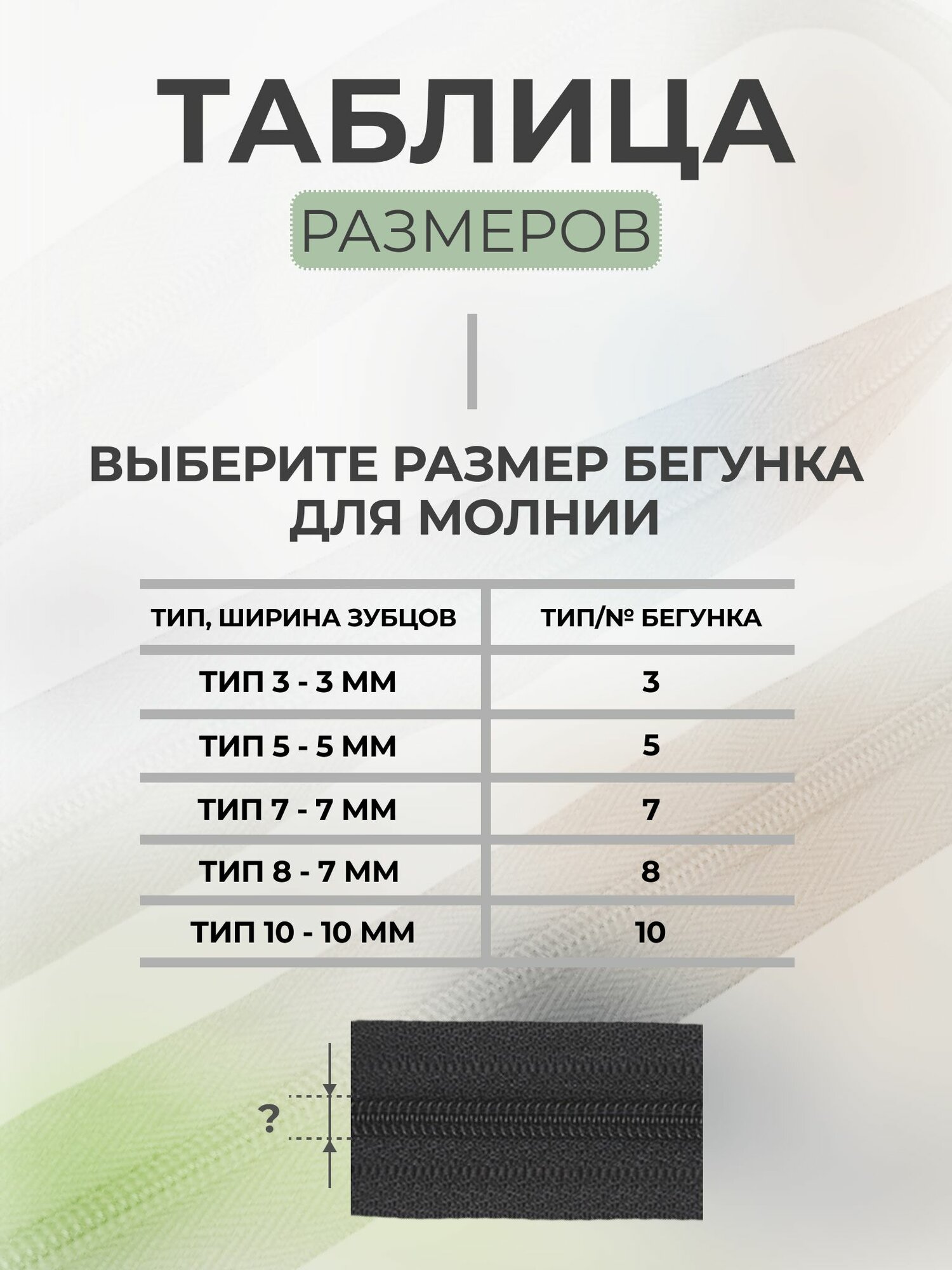 Молнии для одежды используются практически во всех видах одежды, их можно встретить как на рубашках, толстовках, юбках, так и на куртках и обуви. Молнии бывают разных видов: по размеру молнии различаются по ширине замка, самые распространённые размеры это 3 мм (тип 3), 5 мм (тип 5), 7 мм (тип 7), 8 мм (тип 8) и 10 мм (тип 10). По материалу исполнения замка молнии различают:- витые молнии - на текстильной тесьме крепиться спираль из полиэстера, такие виды молний используются в основном в пошиве из лёгкой ткани,- тракторные молнии - зубчики изготовлены из пластмассы и крепятся по-отдельности на тесьму, очень похожи на гусеницу трактора, используются в основной на верхней одежде в толстовках, куртках, а также сумках, рюкзаках и чемоданах, тракторные молнии отличаются своей износостойкостью и высокой степенью защищенности от разрыва,- металлические молнии - это разновидность тракторной молнии, зубчики изготовлены из металла различных сплавов, отличаются высокой надёжностью, богатым внешним видом, долгим сроком службы. В нашем магазине представлены все виды молний, как витые молнии, так тракторные молнии и металлические молнии. Большой выбор цветов, комбинаций цвета зуба и тесьмы, представлены все наиболее востребованные типы молний от 3 мм до 10 мм. Кроме этого, для ателье, небольших швейных производств в нашем магазине можно выбрать молнии любой длины, вплоть до 200 метров по очень интересным предложениям мелкого опта, для этого достаточно зайти на страницу магазина и выбрать вкладу «ОПТ». Если вам необходимо подобрать бегунки к молниям, можно использоваться представленными в магазине комплектами рулонных витых, тракторных и металлических молний с бегунками, а также отдельными предложениями бегунков для витых, тракторных и металлических молний.