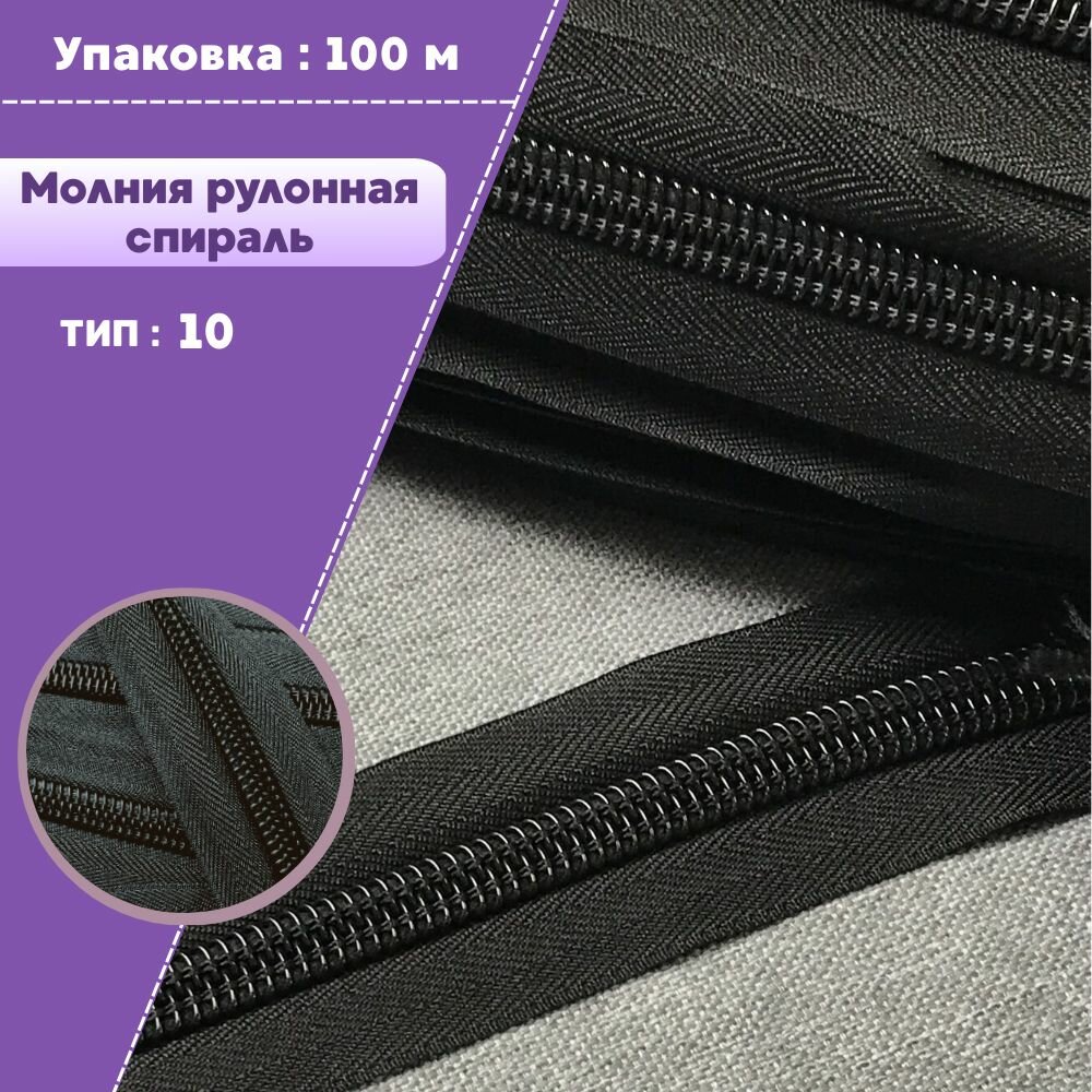 Молния рулонная спираль Т10, упаковка 100 метров, цвет черный: сравнение цен, характеристики, фото, актуальное наличие и цены.