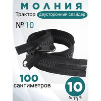 Купить Молния-трактор POLY OXFORD №10, 100 см, 10 шт, двусторонняя, армированная нить тесьмы, черная с доставкой по всей России.