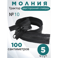 Купить Молния-трактор POLY OXFORD №10, 100 см, 5 шт, двусторонняя, армированная нить тесьмы, черная с доставкой по всей России.