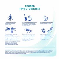 | Дополнительная информация | упаковано в модифицированной атмосфере с азотом; рекомендации по приготовлению: прежде чем приступить к приготовлению смеси, вымойте руки; тщательно вымойте бутылочку, соску и крышку, чтобы в них не осталось следов молока; прокипятите их в течение 5 минут; накройте до использования; прокипятите питьевую воду в течение 5 минут и затем остудите до 37°С; руководствуясь таблицей кормления, налейте в прокипяченную бутылочку точно отмеренное количество теплой воды; используйте только мерную ложку, находящуюся в банке, заполненную без горки; руководствуясь таблицей кормления, добавьте точное количество мерных ложек сухого порошка в соответствии с возрастом ребенка; после использования положите мерную ложку на выступ в банке, как показано в инструкции; взболтайте бутылочку до полного растворения порошка; после приготовления смеси банку с порошком следует плотно закрыть и хранить в сухом прохладном месте; условия хранения: до и после вскрытия хранить при температуре не выше 25 °С и относительной влажности воздуха не более 75%, содержимое банки должно быть использовано в течение 3 недель после вскрытия, не рекомендуется хранить в холодильнике |