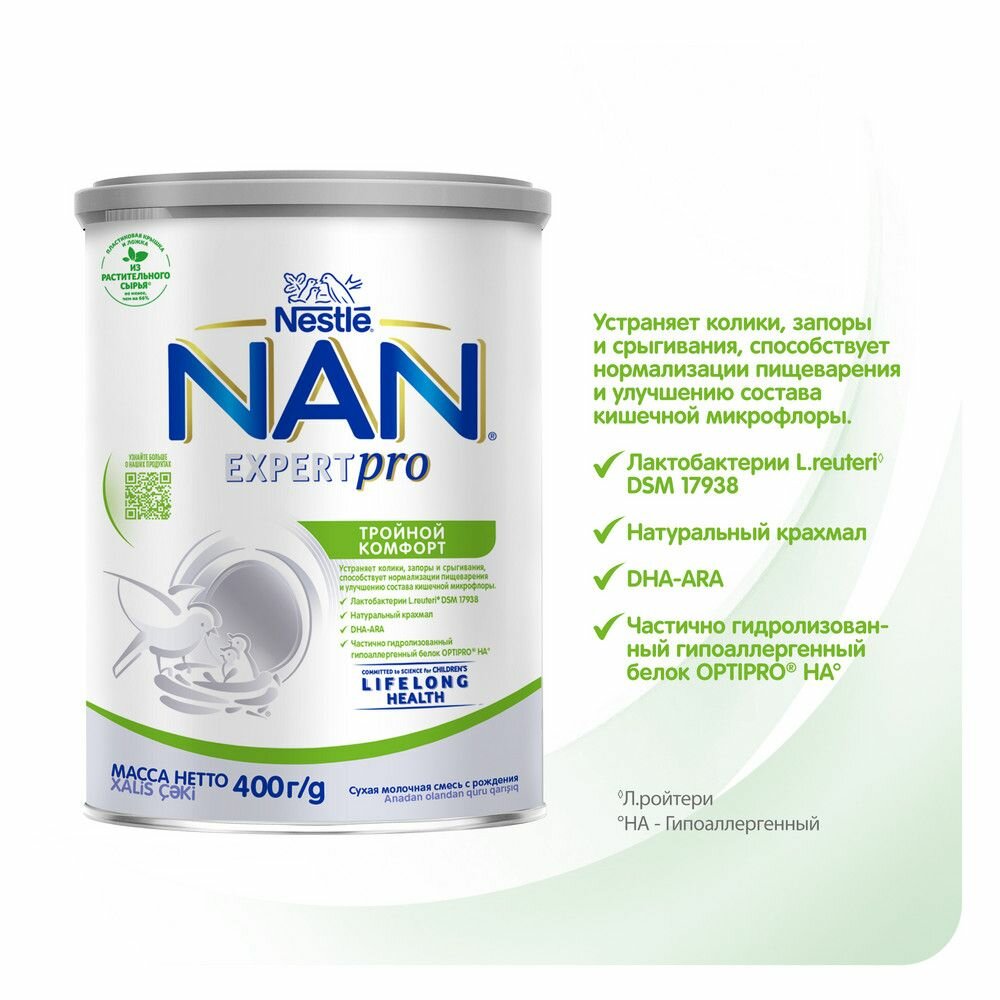 Молочная смесь Nestle NAN ExpertPro тройной комфорт от колик и запоров с рождения 400г 2 шт: сравнение цен, характеристики, фото, актуальное наличие и цены.