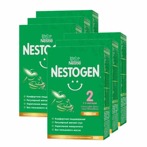 Купить Молочная смесь Nestle Nestogen Premium 2, с 6 месяцев, для регулярного мягкого стула, 300 г 6 упаковок с доставкой по всей России.
