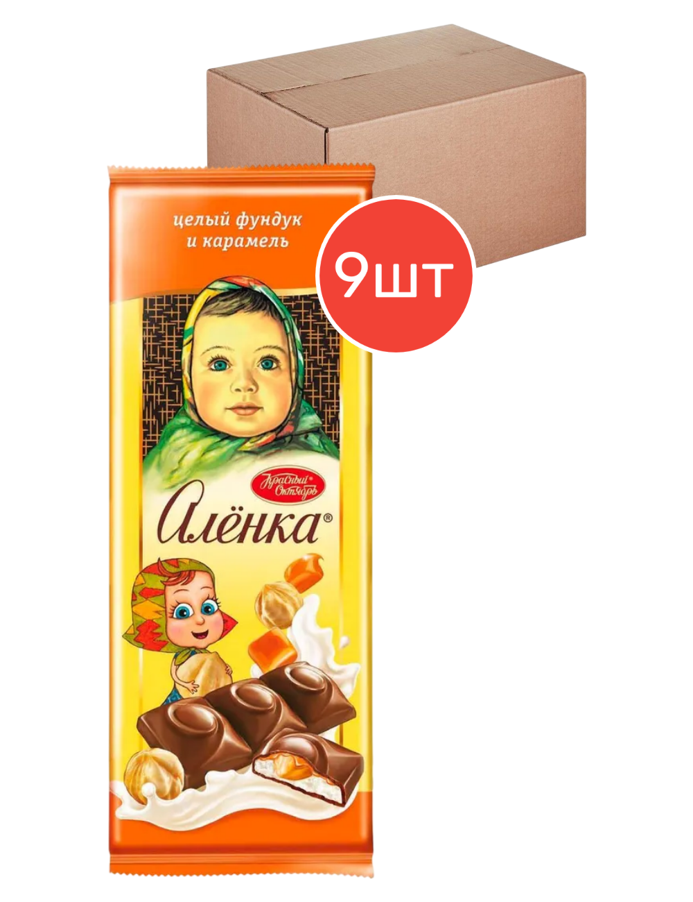 Купить Молочный шоколад Алёнка с начинкой целый фундук и карамель, Красный октябрь, 165г 9шт с доставкой по всей России.