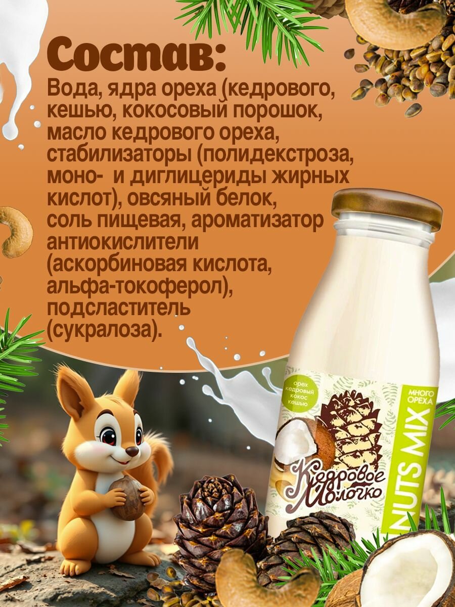 Ассорти кедрового молока — это органический растительный напиток, который превосходно подходит для тех, кто заботится о своем здоровье и придерживается правильного питания. Этот продукт создан на основе орехов и не содержит ГМО и сахара, что делает его великолепным выбором для людей, стремящихся к здоровому образу жизни.