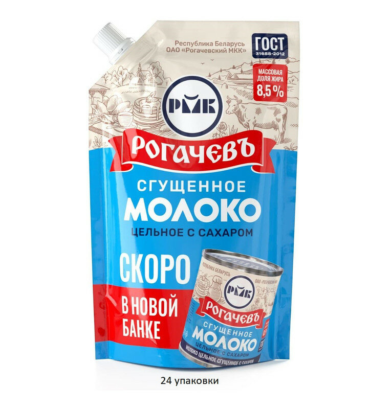 Рогачевъ Молоко сгущенное с сахаром, 270 гр, 24 упаковки в коробке