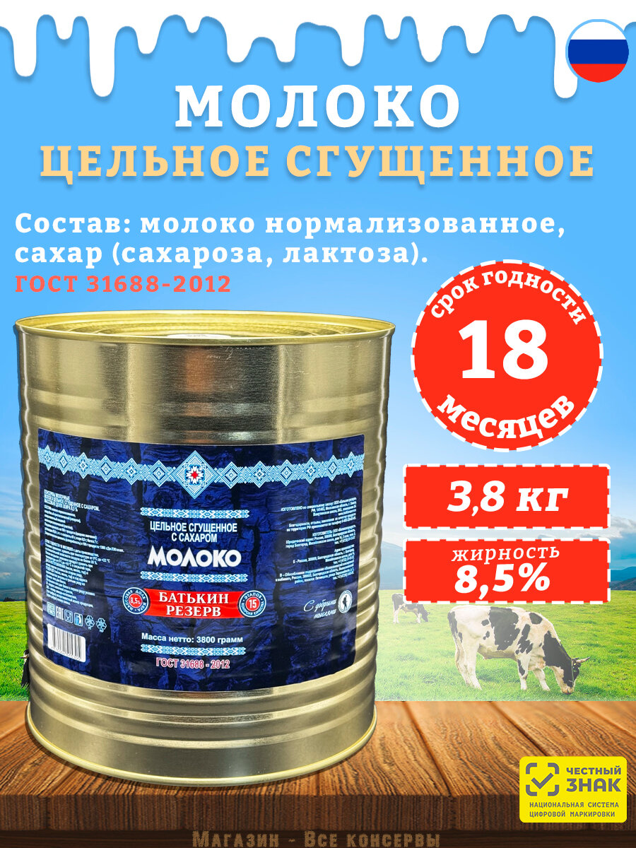 Купить Молоко сгущенное цельное 8.5% ГОСТ Батькин резерв, 1 шт по 3,8 кг с доставкой по всей России. Молоко сгущенное цельное 8.5% ГОСТ Батькин резерв, 1 шт по 3,8 кг: сравнение цен, характеристики, фото, актуальное наличие и цены.