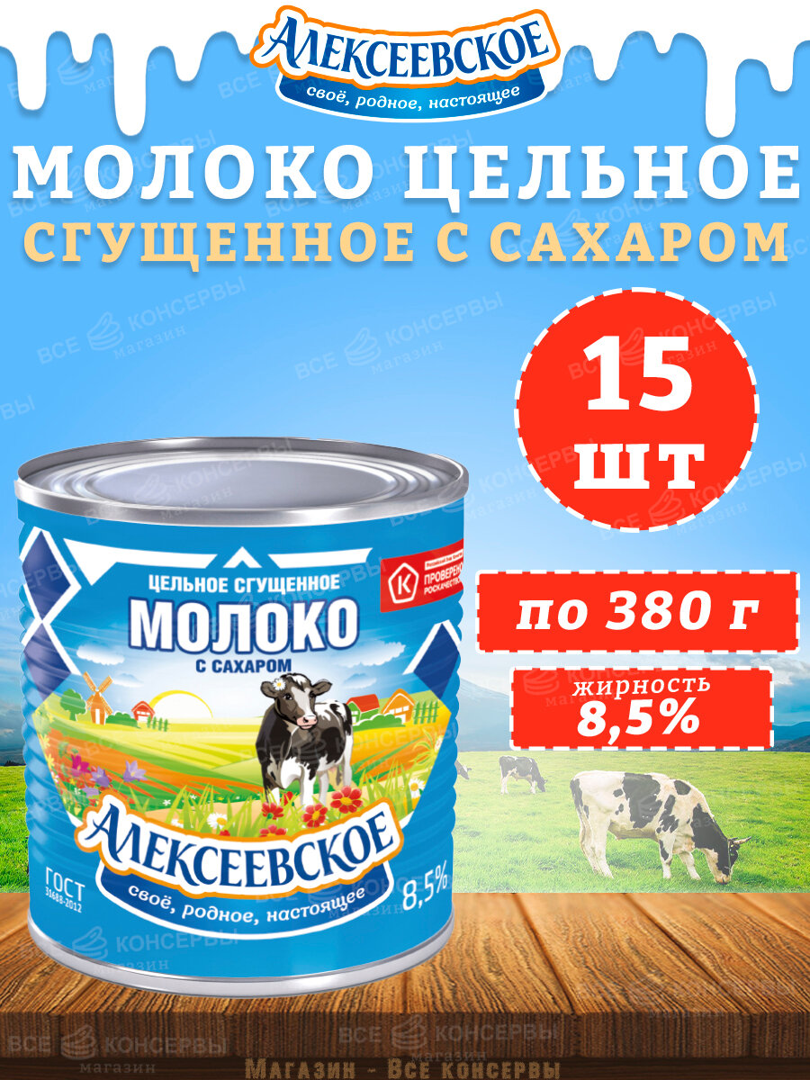 Купить Молоко цельное сгущенное с сахаром 8,5%, Алексеевское, 15 шт. по 380 г с доставкой по всей России. Молоко цельное сгущенное с сахаром 8,5%, Алексеевское, 15 шт. по 380 г: сравнение цен, характеристики, фото, актуальное наличие и цены.