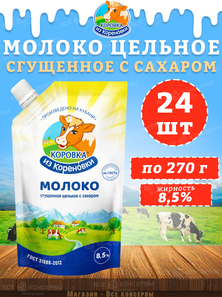 Молоко цельное сгущенное с сахаром 8,5%, дойпак, КизК, 24 шт. по 270 г: сравнение цен, характеристики, фото, актуальное наличие и цены.