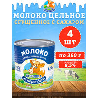 Молоко цельное сгущенное с сахаром 8,5%, ГОСТ, КизК, 4 шт. по 380 г