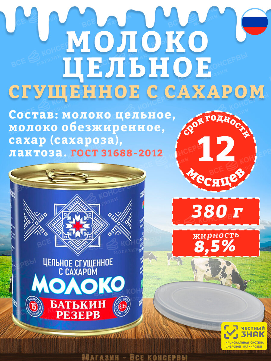 Молоко цельное сгущенное с сахаром, Батькин резерв, ГОСТ, 4 шт. по 380 г: сравнение цен, характеристики, фото, актуальное наличие и цены.