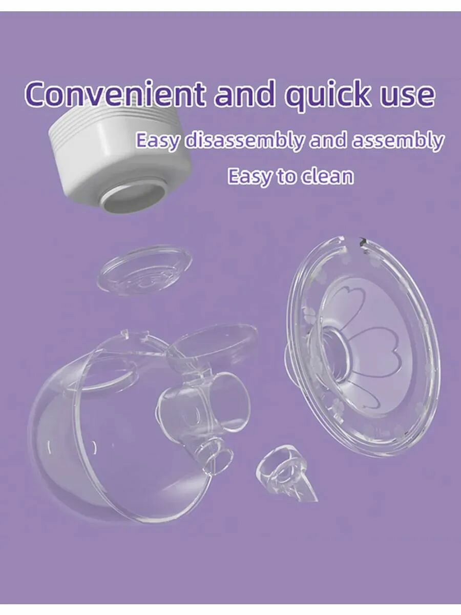 Простота в уходе: различные съемные части молокоотсоса легко моются и монтируются, обеспечивая гигиеничность и безопасность использования.
