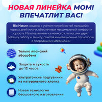 MOMI Bio Nature - Премиальная линейка бесклеевых подгузников Bio Nature изготовлены из хлопка, обеспечивая максимальный комфорт и надёжную защиту для вашего ребёнка. Подгузники для новорожденных с резинкой на спинке Моми разработаны в Японии, изготовлены с использованием самых качественных материалов. Подгузники изготавливаются с применением уникальной технологии, основанной на использовании метода горячего пара, что исключает необходимость применения клея, что делает подгузники еще более безопасными для чувствительной детской кожи. Анатомическая форма подгузников обеспечивает плотное прилегание к телу малыша, минимизируя риск протеканий и обеспечивая дополнительный комфорт. Гипоаллергенные материалы быстро впитывают и надежно удерживают влагу, благодаря чему кожа ребенка остается сухой до 12 часов, как днем, так и ночью. Эластичный поясок гарантирует, что вся жидкость остается внутри подгузника, а новый супер-дышащий внутренний слой быстро распределяет влагу и предотвращает её накопление. Мягкие оборочки вокруг ножек защищают от протекания, обеспечивая вам и вашему малышу спокойствие и комфорт. Индикатор наполнения точно покажет, когда пришло время менять подгузник. Даже у самых активных малышей подгузники не сползают и не смещаются, всегда остаются на месте, не образуя комков и не стесняя движений ребенка. Подгузники подходят как для мальчиков, так и для девочек. Почему MOMI Bio Nature? – Органический хлопок; - Бесклеевая основа; - Анатомическая форма; - 3D поверхность; - Технология мгновенного впитывания; - Индикатор влаги; - Лента утилизации; - Гипоаллергенные и экологичные материалы; - Супер-мягкий эластичный поясок; - Закругленные мягкие липучки безопасны для нежной детской кожи; - Бортики не натирают ножки; - Подходят для использования как днем, так и ночью. MOMI Bio Nature NewBorn - это воплощение премиального качества и инновационного подхода к заботе о детях. Особое внимание уделено деталям, что делает подгузники MOMI Bio Nature невероятно удобными.
