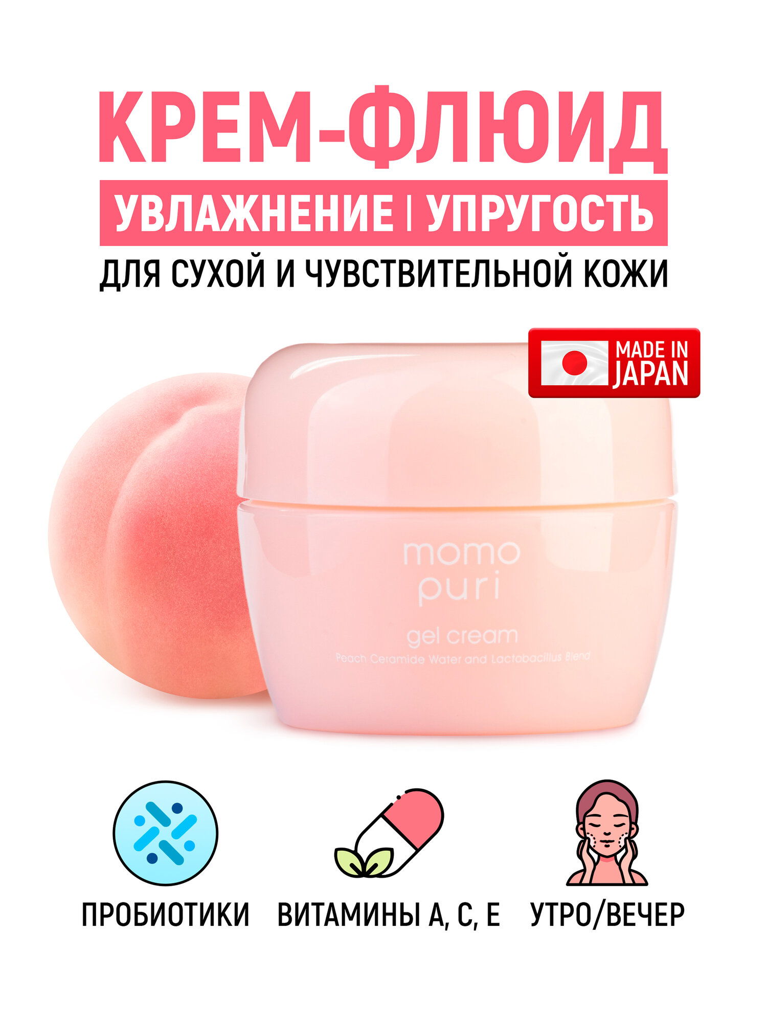 Купить Momo Puri Крем-флюид для лица увлажняющий с лактобактериями, витаминами А, C, E и керамидами «Увлажение и упругость» / Для сухой и чувствительной кожи (Япония), 80 г с доставкой по всей России. Momo Puri Крем-флюид для лица увлажняющий с лактобактериями, витаминами А, C, E и керамидами «Увлажение и упругость» / Для сухой и чувствительной кожи (Япония), 80 г: сравнение цен, характеристики, фото, актуальное наличие и цены.