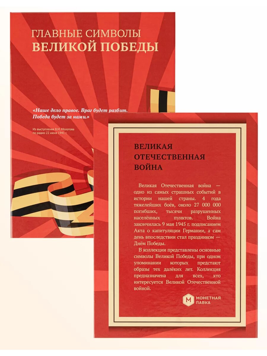 Представляем новую коллекцию с монетами ко дню Победы в Великой Отечественной войне. Миниатюрная и элегантная коллекция с изображением символов Великой Победы из серии коллекции монет «Великая Отечественная война» в номинале 10 юбилейных рублей.