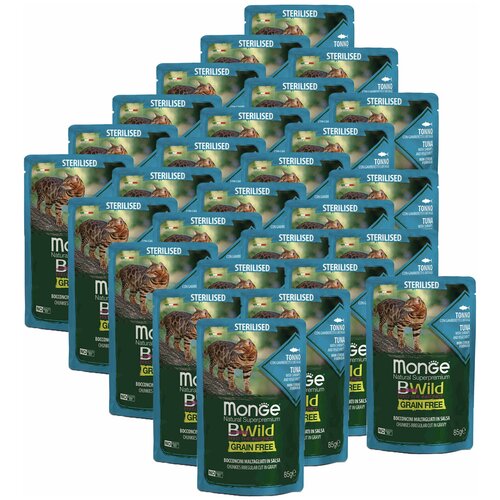 Купить Monge Cat BWild GRAIN FREE паучи из тунца с креветками и овощами для стерилизованных кошек 85г х 28 шт. с доставкой по всей России. Monge Cat BWild GRAIN FREE паучи из тунца с креветками и овощами для стерилизованных кошек 85г х 28 шт.: сравнение цен, характеристики, фото, актуальное наличие и цены.