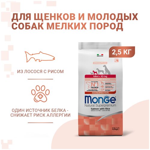 Monge (Монж) Dog Speciality Line Puppy & Junior Mini сухой корм из лосося и риса для щенков мелких пород 2,5 кг.