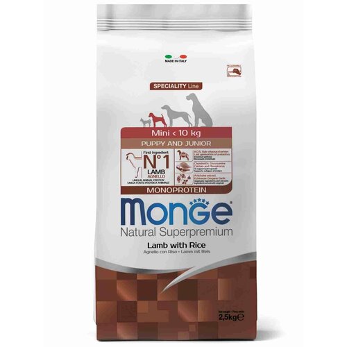 Monge Dog Monoprotein Mini корм для щенков мелких пород с ягненком и рисом 2,5 кг: сравнение цен, характеристики, фото, актуальное наличие и цены.