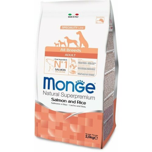 Купить Monge Dog Speciality корм для собак всех пород лосось с рисом 2,5 кг с доставкой по всей России. Monge Dog Speciality корм для собак всех пород лосось с рисом 2,5 кг: сравнение цен, характеристики, фото, актуальное наличие и цены.