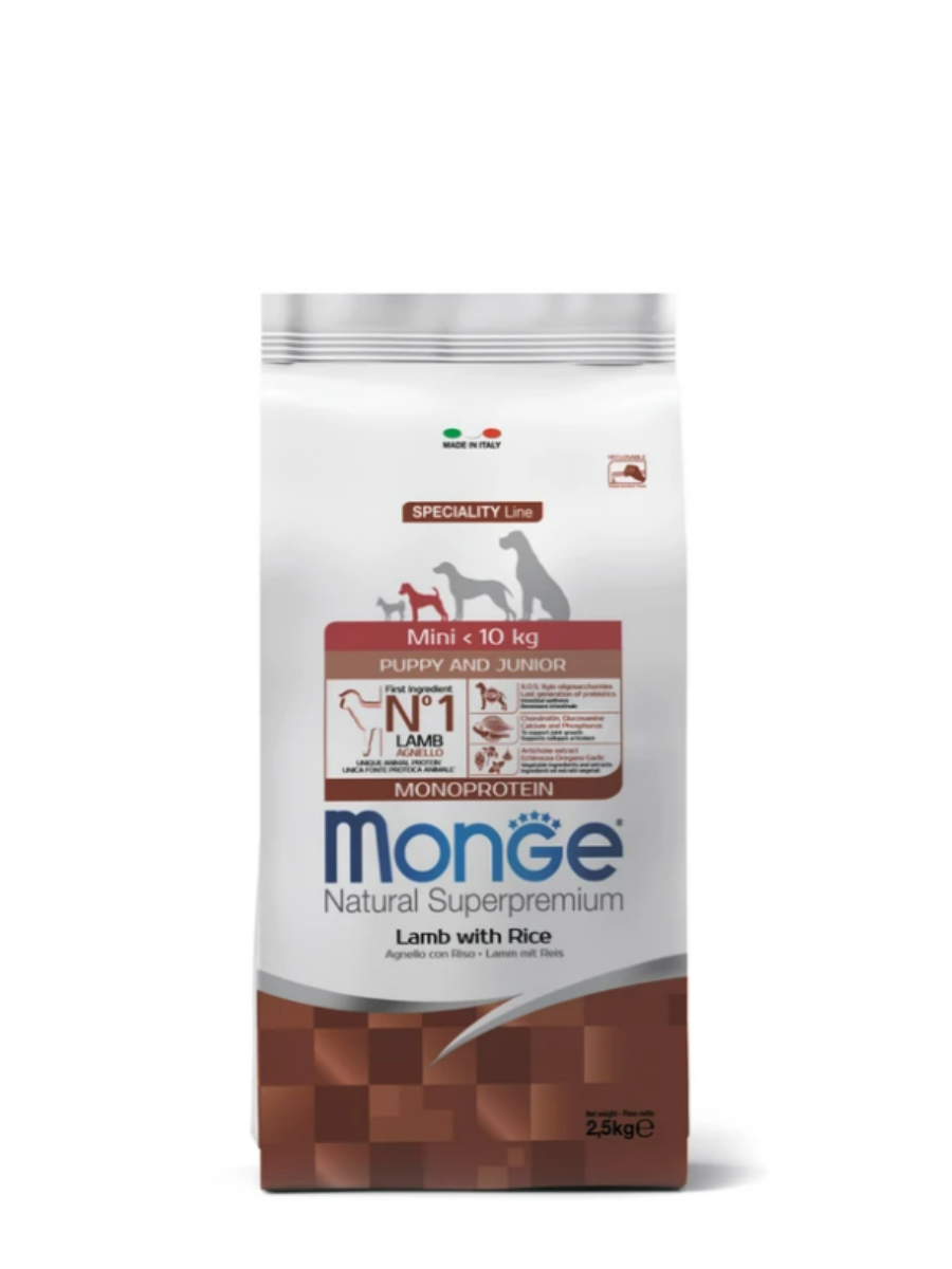 Monge (Монж) Dog Speciality Line Puppy & Junior All Breeds сухой корм из мяса ягнёнка и риса для щенков всех пород.