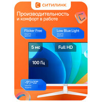 Монитор Asus 23.8" VY249HF-W Eye Care (90LM06A4-B03A70) белый, диагональ экрана 23.8", разрешение 1920x1080, матрица IPS, матовая, время отклика 1 мс, соотношение сторон 16:9, яркость 250 кд/м2, частота обновления 100 Гц, разъемы HDMI (90LM06A4-B03A70)
