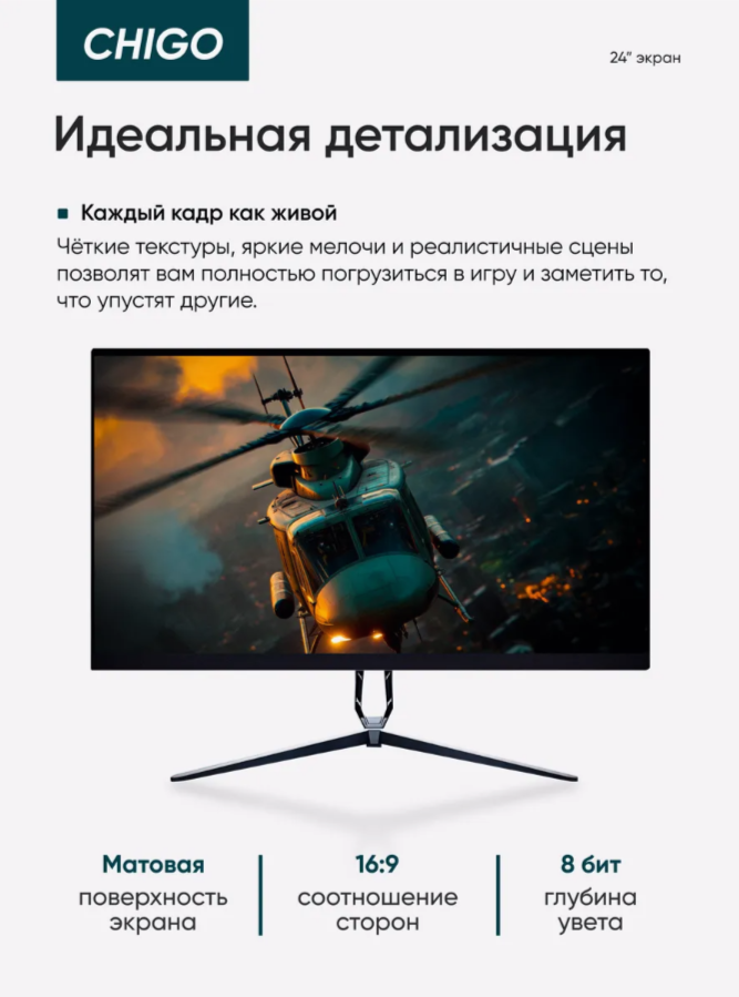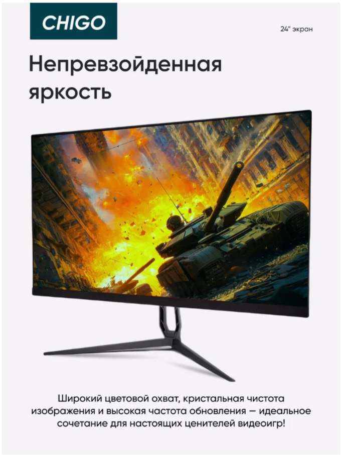 - Размер: 24-дюймовый прямой экран без полей, 75 Гц