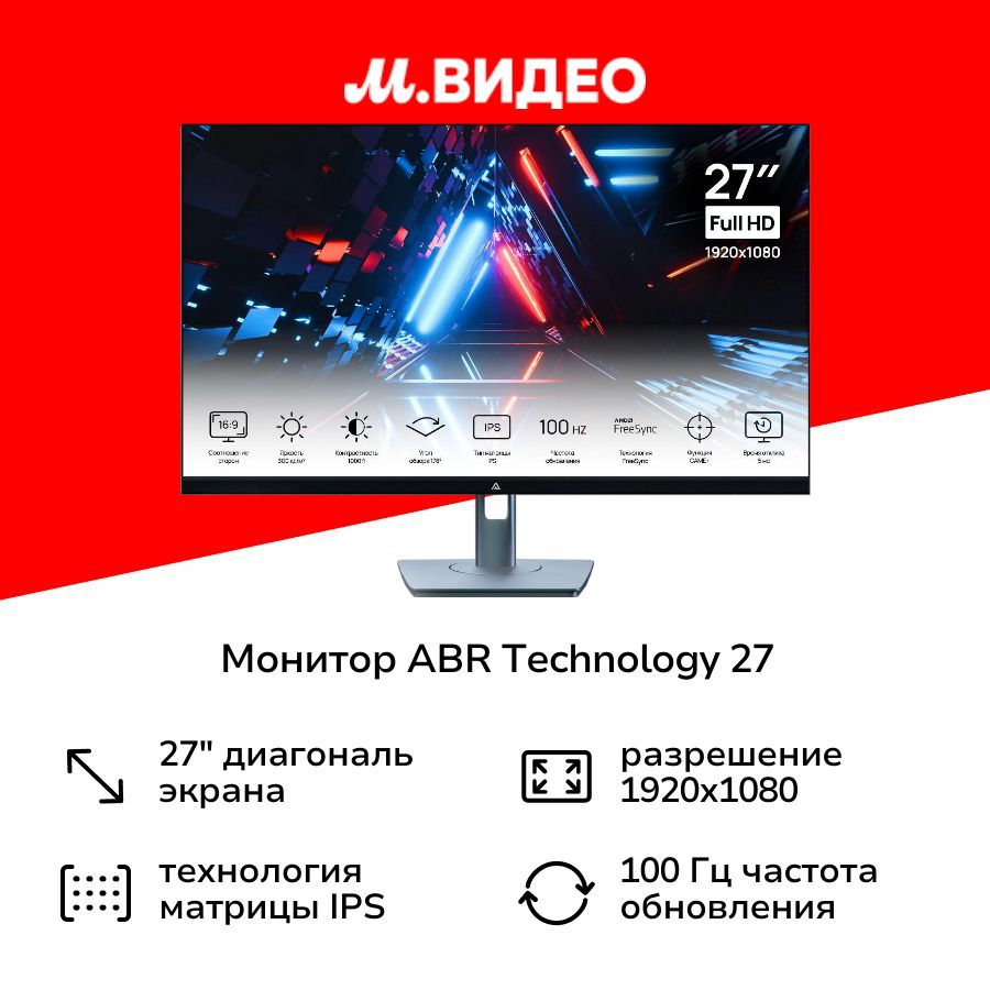 Монитор ABR Technology 27″/IPS/1920×1080/100Гц/черный (MS27HQ-i1): сравнение цен, характеристики, фото, актуальное наличие и цены.