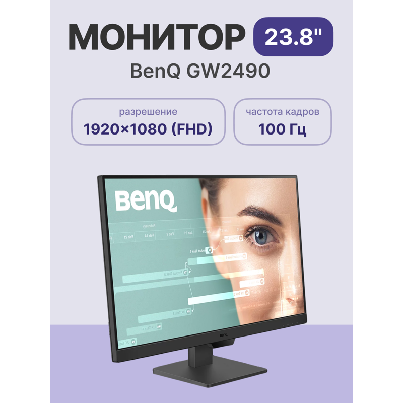 Купить Монитор Benq GW2490 23.8′, 1920×1080, IPS, 100Hz, 20M:1, 250cd, 5ms, 2*HDMI, DP, Speakers, Flicker-free; Low Blue Light, 3Y, Black с доставкой по всей России.