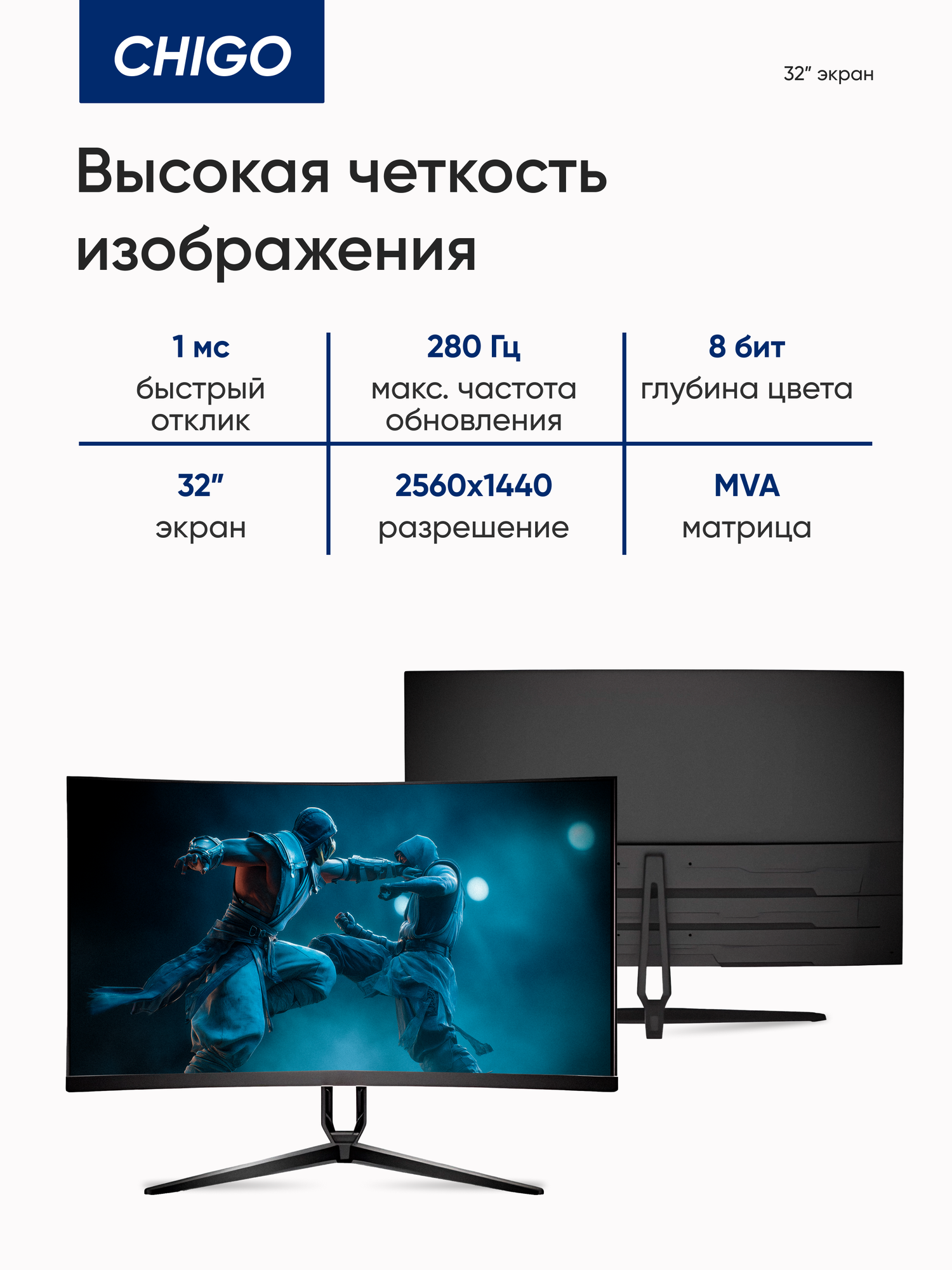 Игровой монитор Chigo C32-Q280B4, 32″, 280Гц, MVA, 2560×1440: сравнение цен, характеристики, фото, актуальное наличие и цены.