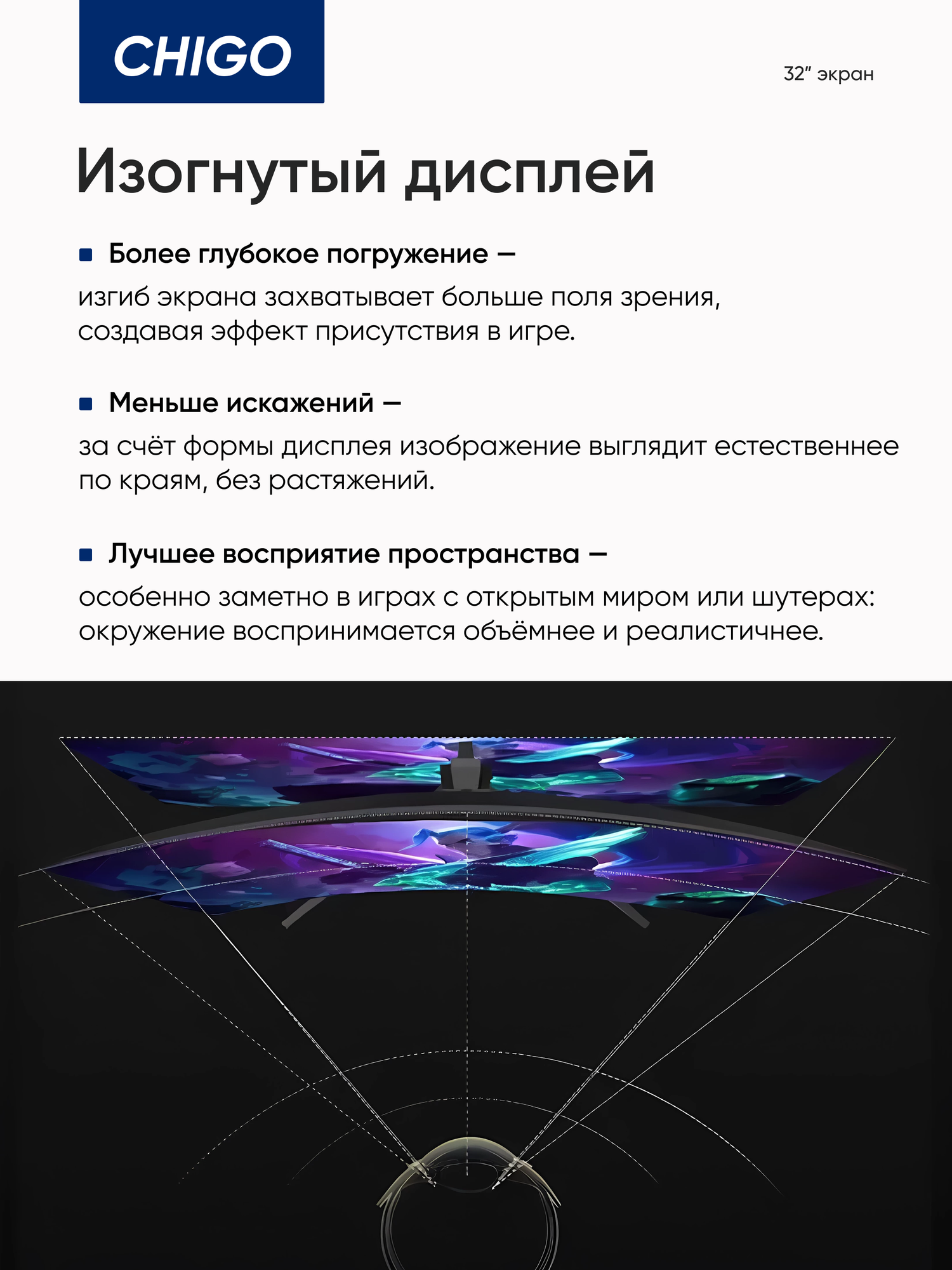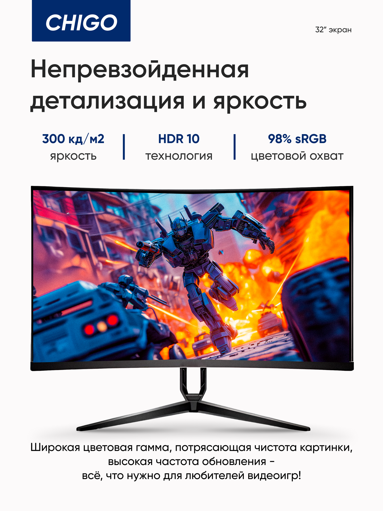 | Подробная комплектация | Chigo Curved Display 32" 2560*1440 180Hz (C32-Q180B4) Black |