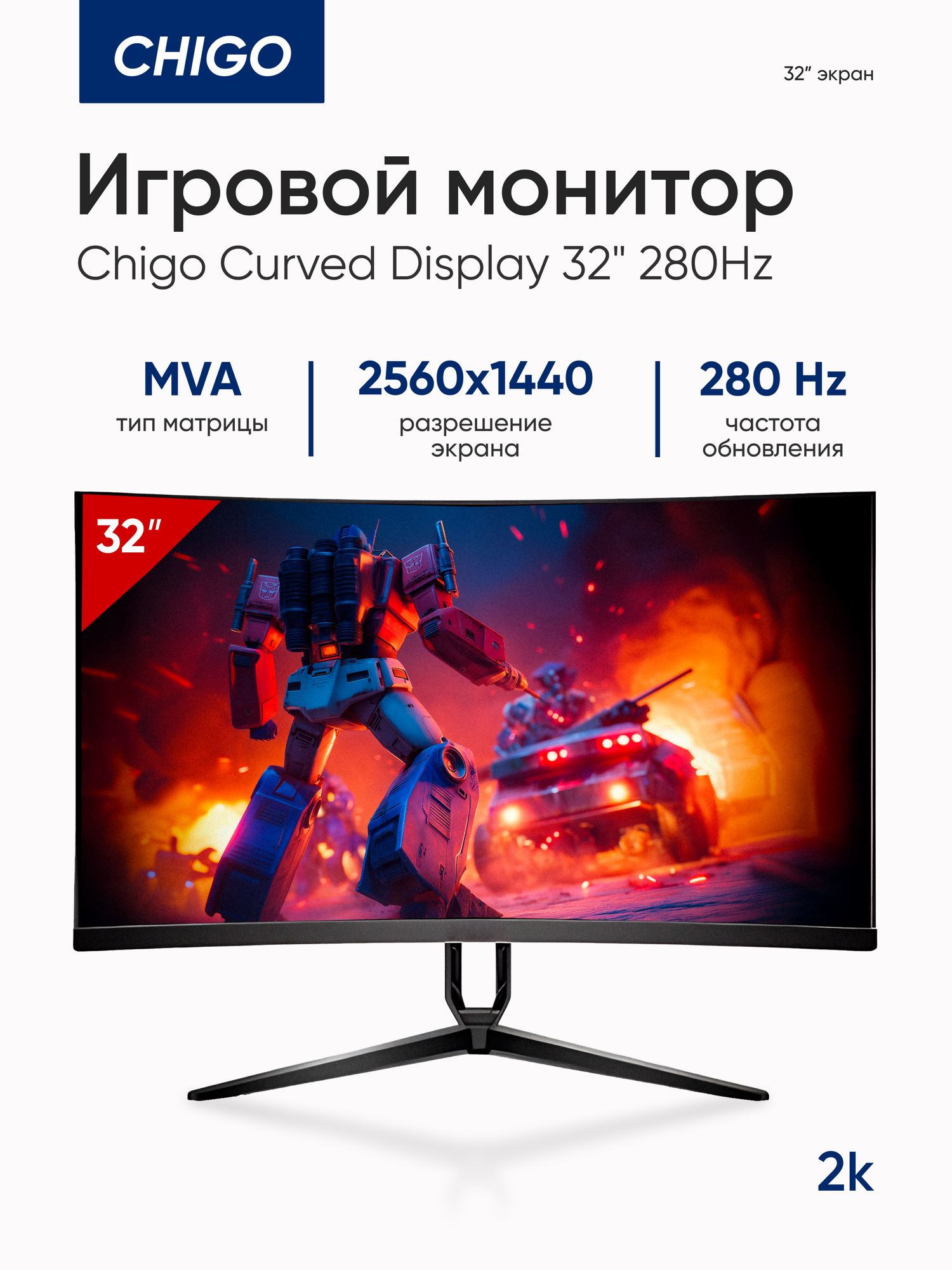 Купить Игровой монитор Chigo C32-Q280B4, 32″, 280Гц, MVA, 2560×1440 с доставкой по всей России.