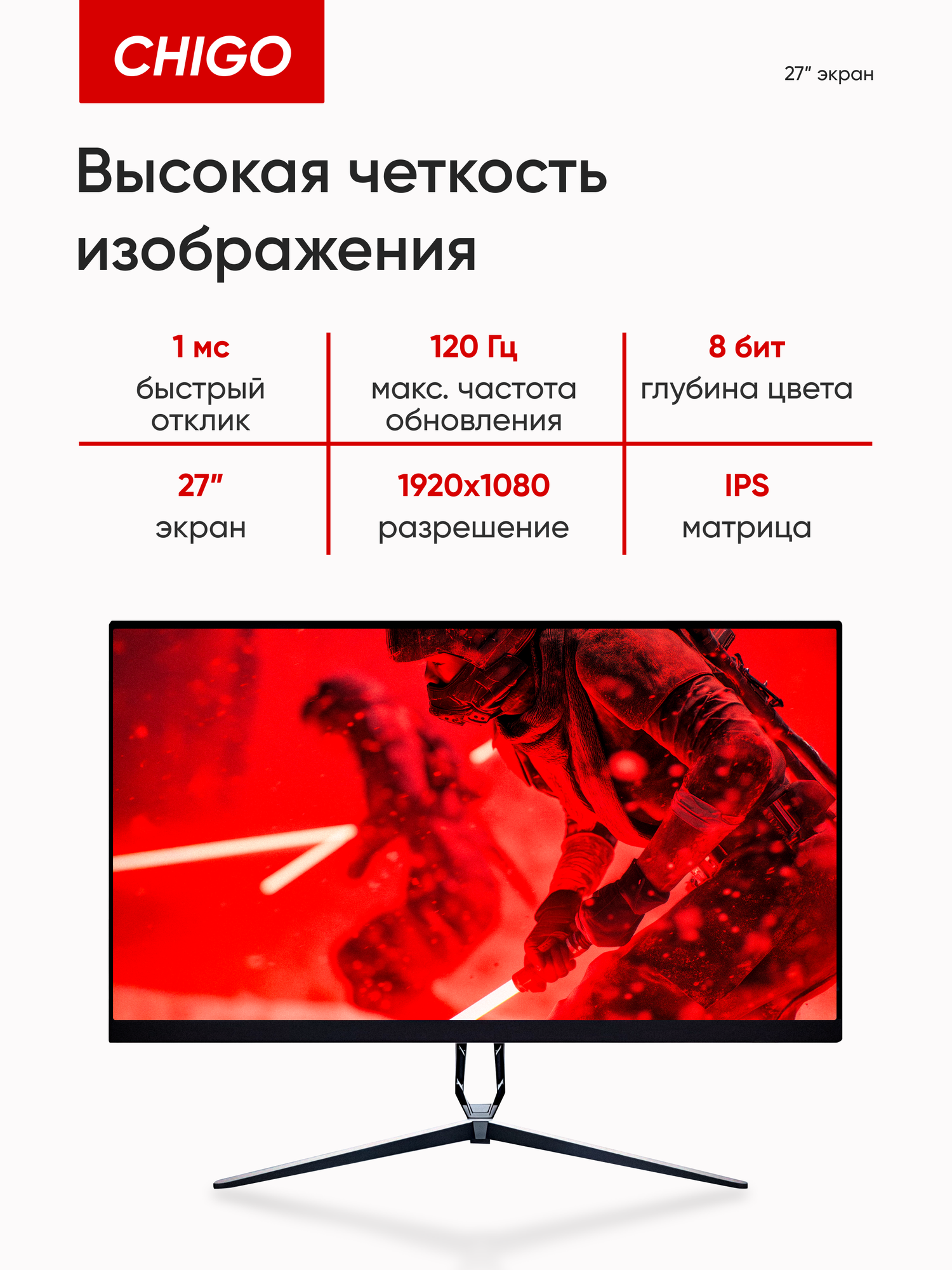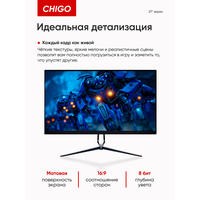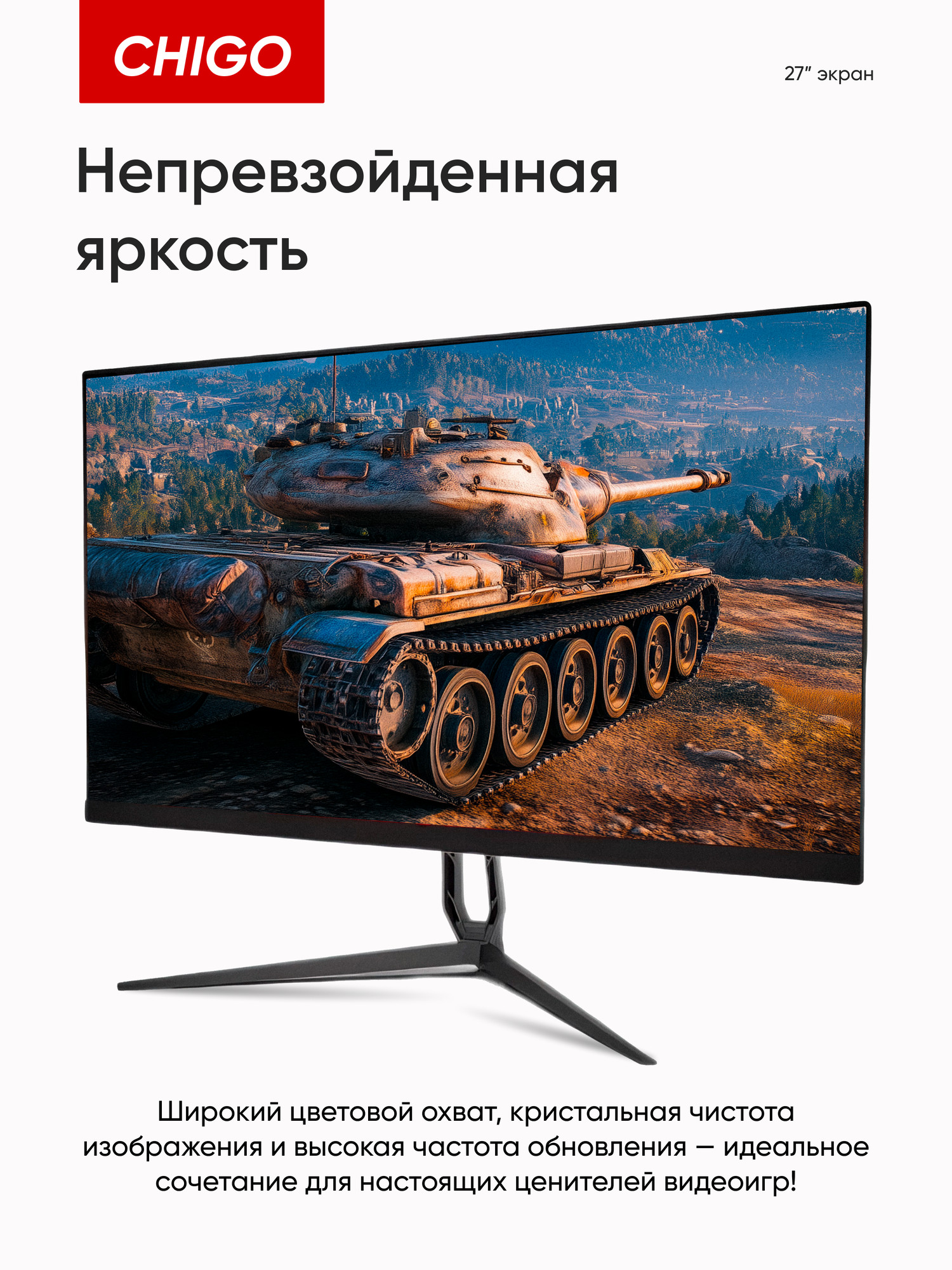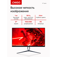 Chigo Display 27" IPS 1920*1080 120Hz (F27-F120B1) Black — это идеальное устройство для отображения информации, которое станет незаменимым помощником в вашей работе и развлечениях. Это надежный и функциональный выбор для тех, кто ценит качество изображения и комфорт использования. Он подходит как для профессиональной работы, так и для развлечений, обеспечивая отличные характеристики и удобство в эксплуатации.