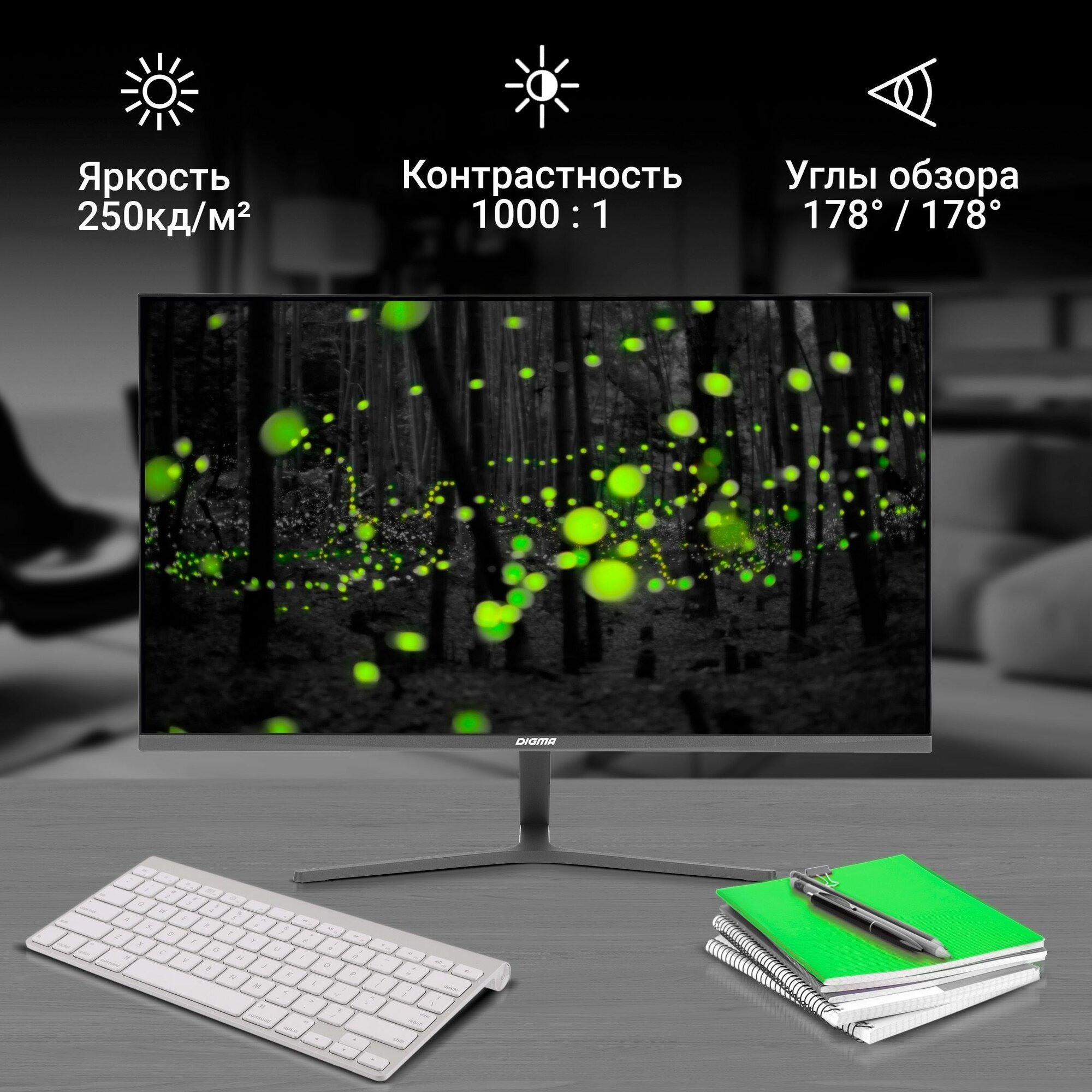 - Яркость экрана 250 кд/м2