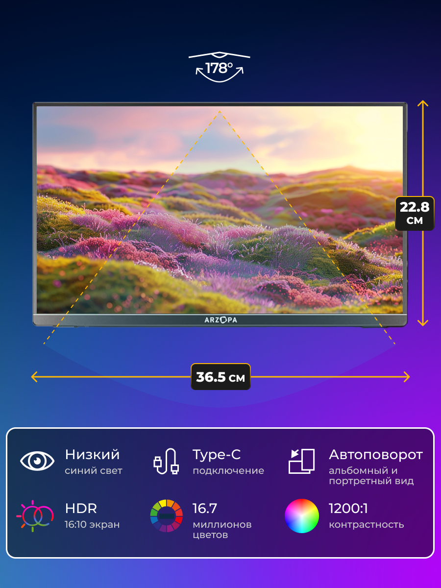 Купить Монитор для ПК ARZOPA Z1RC1, 16 дюймов, 60ГЦ, IPS, портативный монитор для ноутбука с динамиками с доставкой по всей России. Монитор для ПК ARZOPA Z1RC1, 16 дюймов, 60ГЦ, IPS, портативный монитор для ноутбука с динамиками: сравнение цен, характеристики, фото, актуальное наличие и цены.