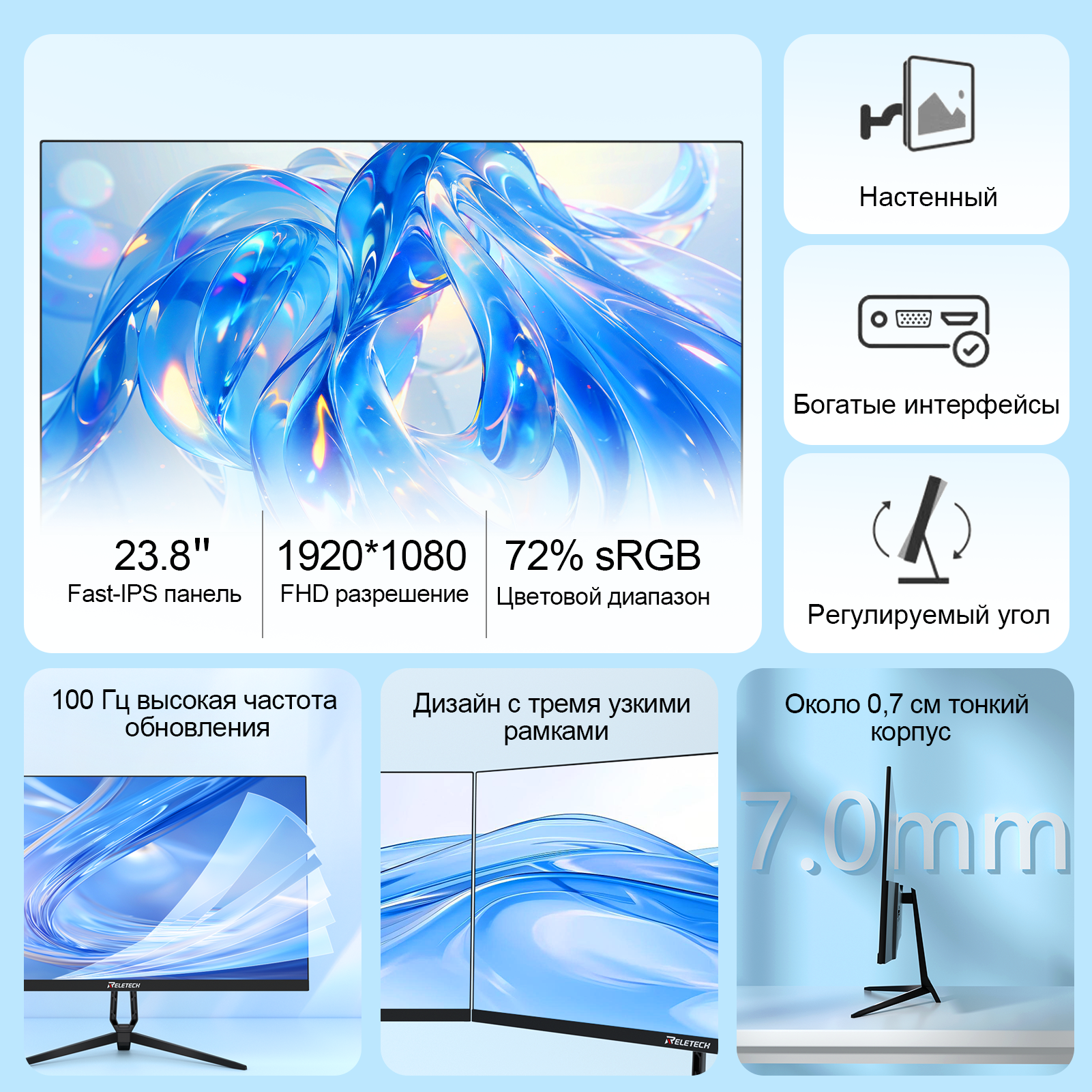 Монитор игровой Reletech 23.8 » 100 Гц, Fast-IPS, 1ms, 1920×1080, HDMI+VGA, защита глаз, для компьютера, R23 Pulse: сравнение цен, характеристики, фото, актуальное наличие и цены.
