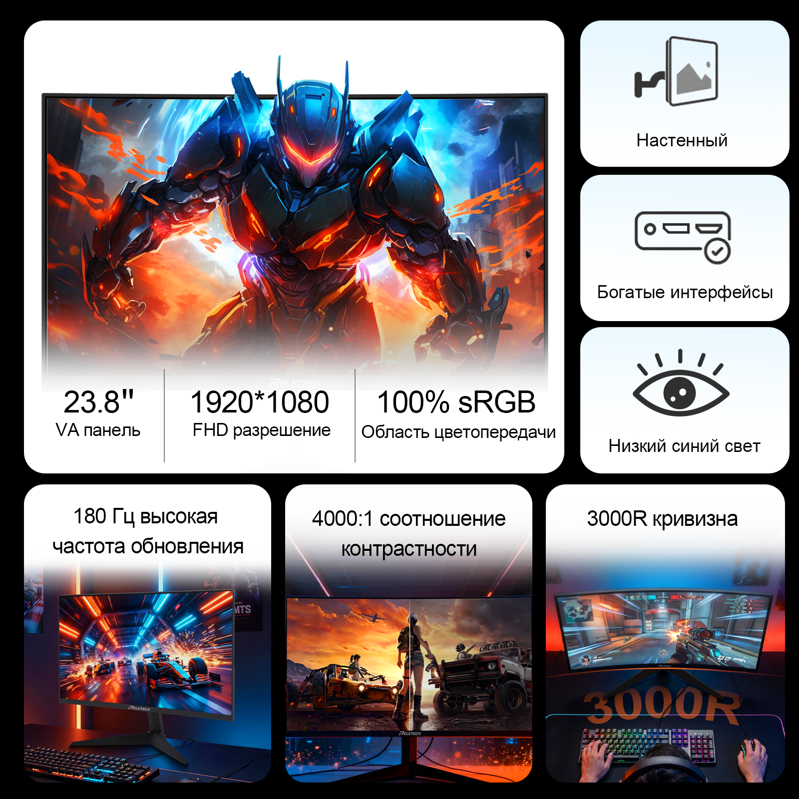 Профессиональный игровой монитор Reletech G25F180 с изогнутым экраном 23.8" и разрешением 1920x1080 FHD. Монитор оснащен 23.8-дюймовым изогнутым экраном с радиусом изгиба 3000R, что обеспечивает более захватывающий и реалистичный игровой опыт. Соотношение сторон экрана составляет 16:9, а разрешение - 1920x1080 пикселей, что гарантирует четкость и детализацию изображения. Монитор поддерживает максимальную частоту обновления кадров до 180 Гц, что обеспечивает плавность и отсутствие задержек при игре. Монитор Reletech G25F180 поддерживает адаптивную синхронизацию, которая автоматически регулирует частоту кадров в соответствии с возможностями вашего компьютера, что обеспечивает более плавный и стабильный игровой процесс. Монитор имеет 100% покрытие sRGB, что обеспечивает широкий цветовой диапазон и реалистичные цвета. Монитор оснащен интерфейсами HDMI и DisplayPort, а также оптическим аудиовыходом для подключения к различным устройствам. Блок питания встроенный, что делает его удобным для использования в различных условиях. Монитор выполнен в черно-сером цвете и имеет стильный дизайн без оправы для глаз. Выбирая монитор Reletech G25F180, вы получаете качественный, надежный и стильный игровой монитор, который обеспечит вам комфортный и захватывающий игровой опыт.