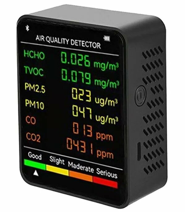 Монитор качества воздуха 6 в 1. Детектор СО2, угарного газа CO, пылевых частиц PM2.5 и PM10, HCHO формальдегида, TVOC летучих органических веществ.: сравнение цен, характеристики, фото, актуальное наличие и цены.