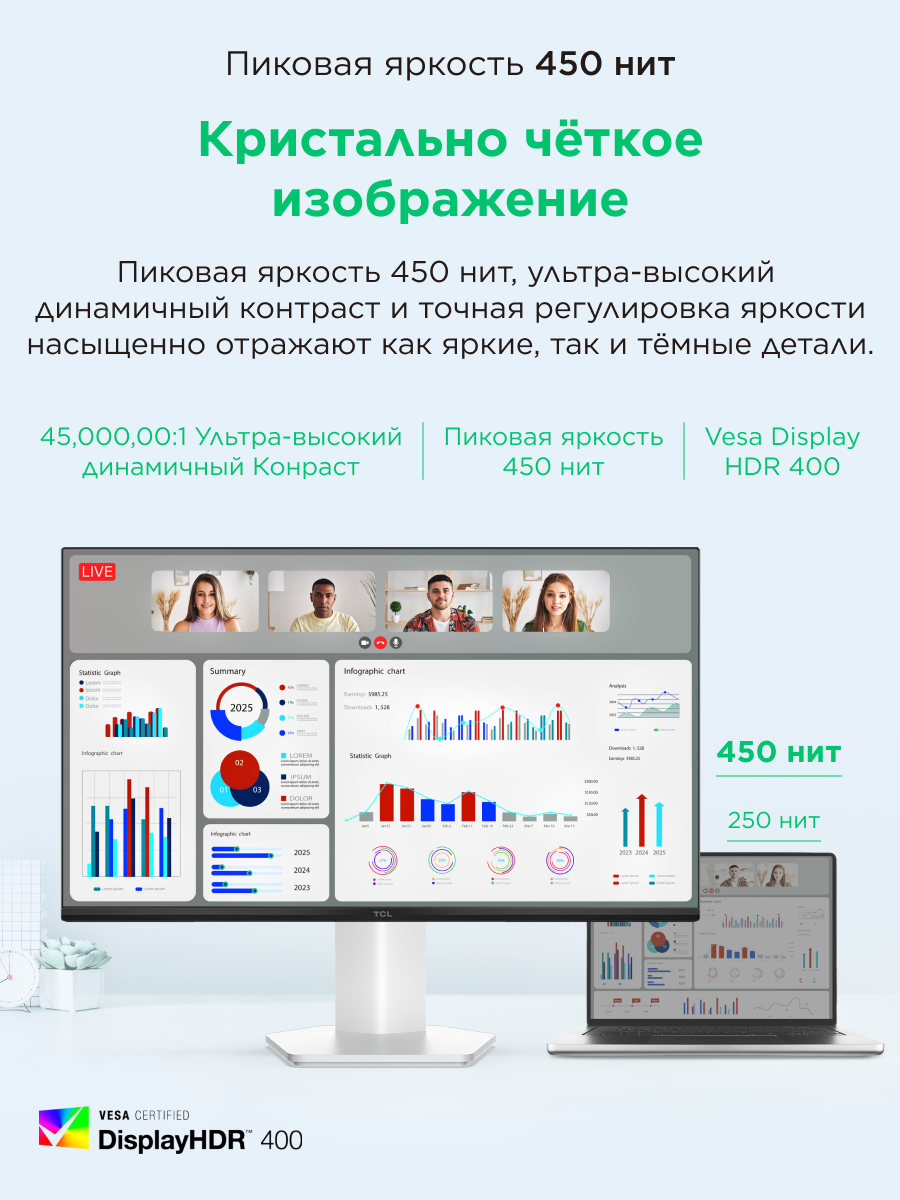 Купить Монитор TCL MiniLED 24 G54, диагональ 24″, разрешение 1920×1080 с доставкой по всей России.