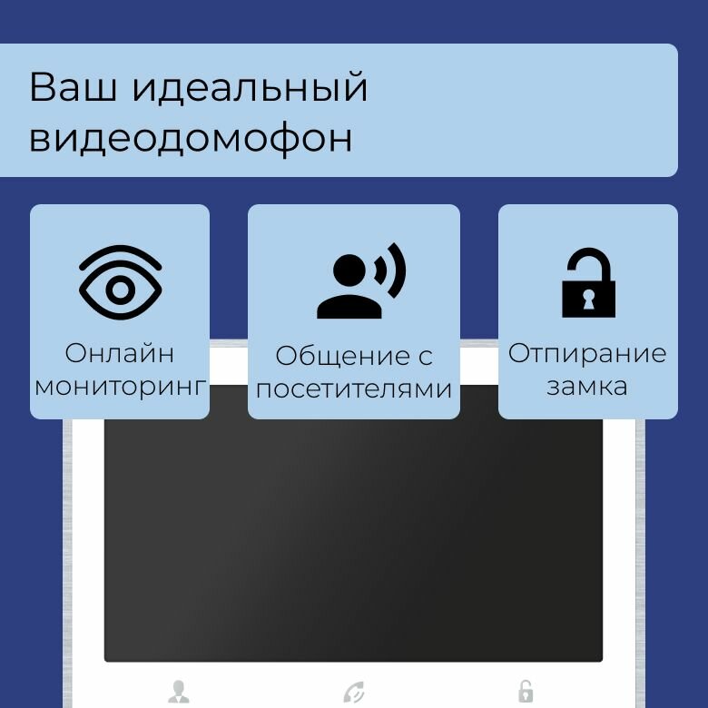 IPS дисплей диагональю 7 дюймов (17 см) обеспечивает четкое и яркое изображение. Тонкий корпус со встроенным источником питания делает устройство компактным и удобным в использовании. Стеклянная сенсорная панель управления Easy Buttons позволяет легко и быстро управлять функциями домофона.