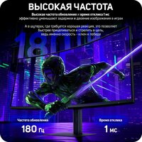 Другим критерием, по которому Xiaomi G34WO отличается от большинства мониторов на рынке является частота обновления экрана. Этот показатель определяет как часто экран обновляет изображение в секунду, и влияет на плавность и реалистичность движения. Xiaomi G34WO имеет частоту обновления 180 Ги что является одним из самых высоких значений среди игровых мониторов. Для сравнения, стандартная частота обновления для мониторов составляет 60 Гц, а длятелевизоров - 50 или 60Гц.