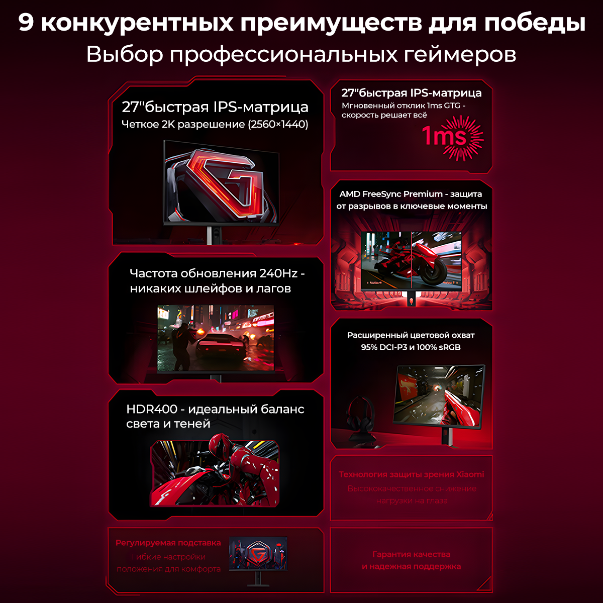Ищете идеальный подарок на 8 марта, день рождения, юбилей, новоселье или Новый год? Не знаете, что подарить маме, папе, бабушке, дедушке, подруге, другу, жене, мужу, геймеру, стримеру, сестре или брату? Обратите внимание на игровой монитор Xiaomi Redmi G27Q 240Hz (P27QDA-RG). Не упустите возможность сделать выбор, который будет оценен по достоинству! Игровой монитор Redmi P27QDA-RG — это не просто техника, это возможность наслаждаться любимыми играми, работать с максимальным комфортом и удивлять своих близких. Подарите им радость и возможность погружения в мир высоких технологий!