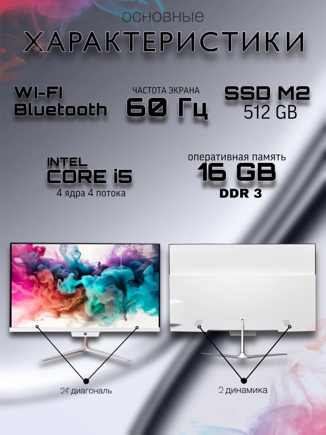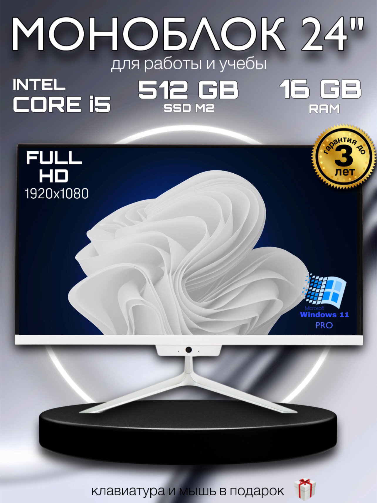 Моноблок DWO 24 дюйма, Intel Core i5, Windows 11pro, SSD 512ГБ, RAM 16ГБ, белый: сравнение цен, характеристики, фото, актуальное наличие и цены.
